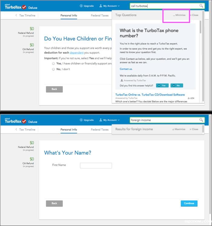 TurboTax:层叠窗口有一个明显的标记去除最小化窗口(上面的图片)。这可以让用户释放屏幕底部的空间。最大化后会返回原来的状态。